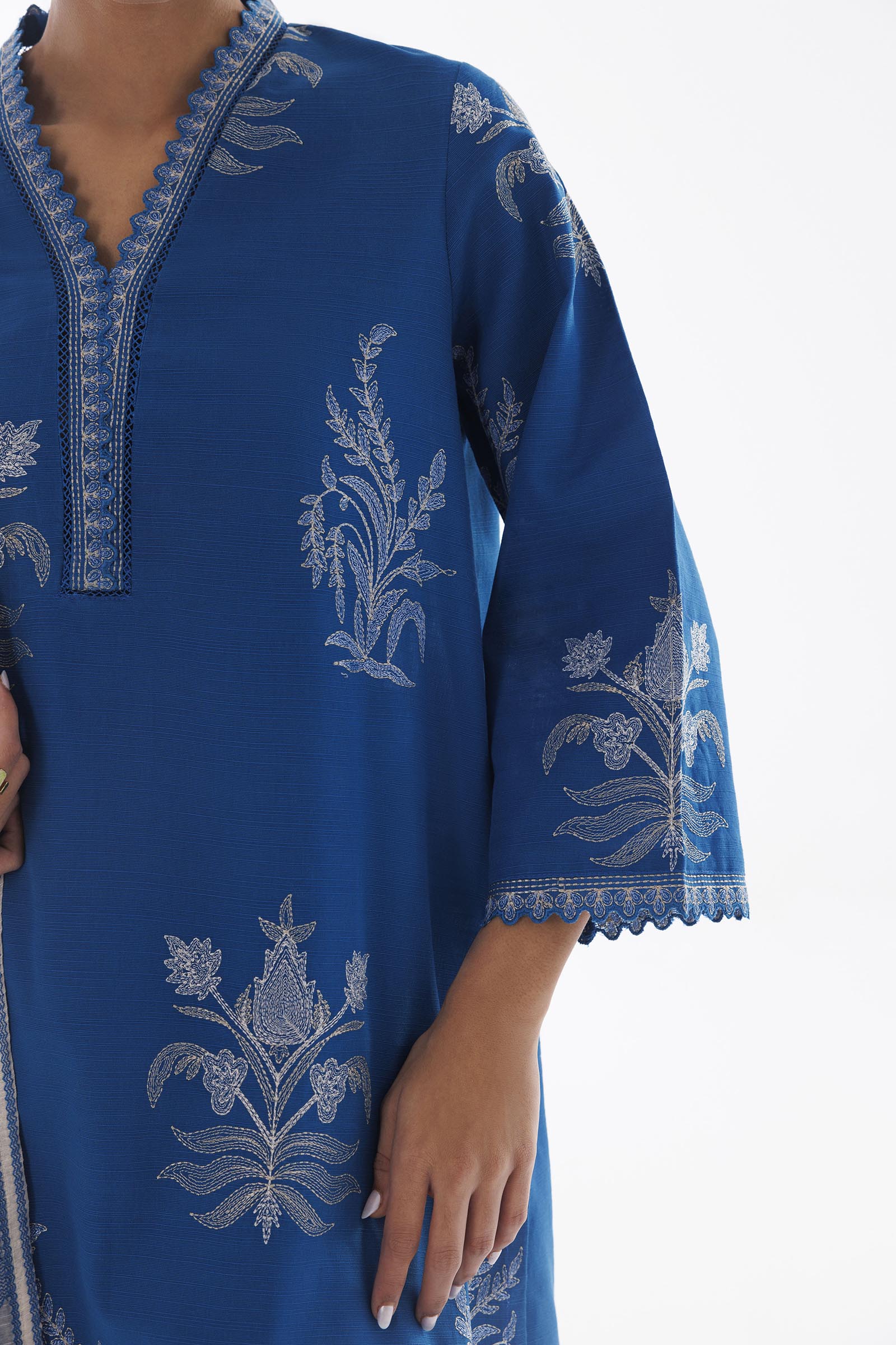 Trouser: Blue Slub Khaddar Skinny Shalwar Included